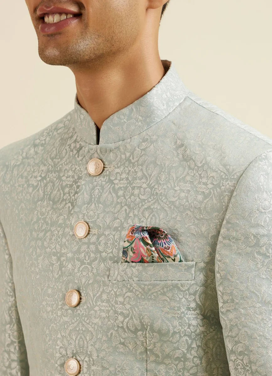 Manyavar Men’s Self Design Tailored-Fit 3 Piece Suit