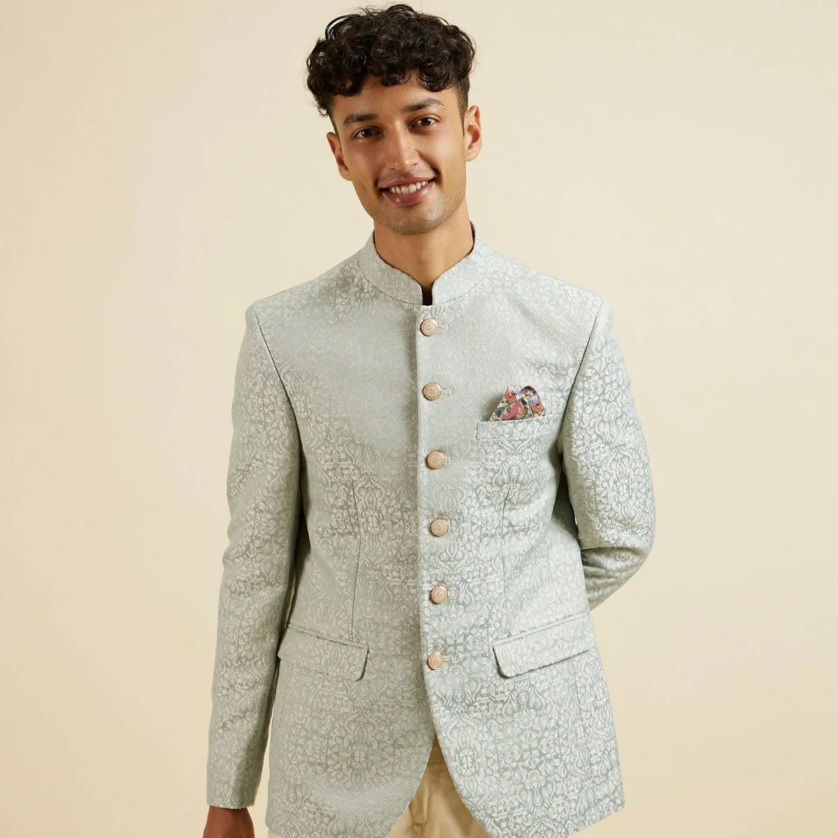 Elevate your wardrobe with the Manyavar Men’s Self Design Tailored-Fit 3 Piece Suit, a distinguished formal ensemble designed for special occasions, weddings, celebrations, and corporate events. This meticulously tailored set features a structured blazer, a matching waistcoat, and well-fitted trousers in an eye-catching self-design pattern that enhances its refined silhouette. Crafted with attention to detail and quality, the suit offers a polished and elegant appearance that stands out at festive events or formal gatherings. Pair it with a crisp dress shirt and classic dress shoes to complete a timeless, charismatic look.