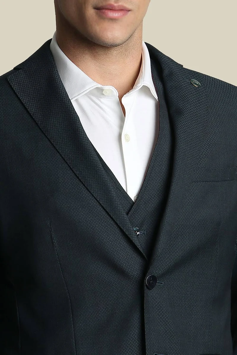 A timeless formal men’s single-breasted solid suit by Peter England with a sleek tailored silhouette — perfect for office, weddings, and formal occasions.