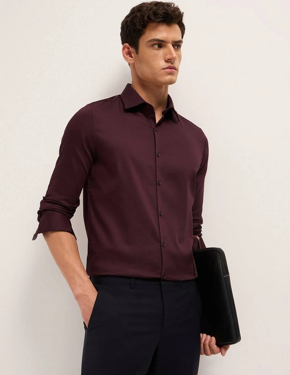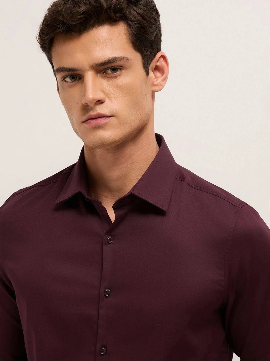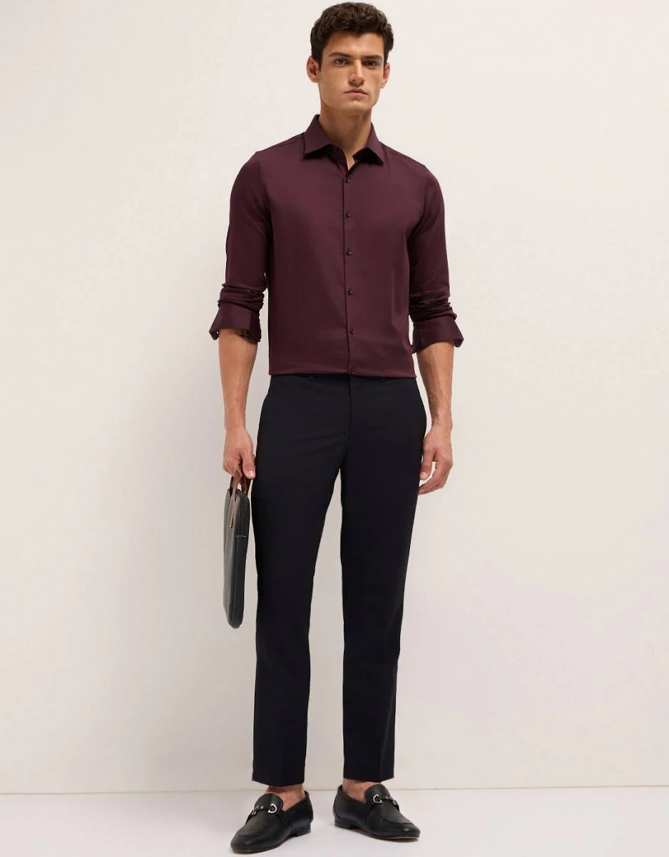 A classic solid tailored-fit formal shirt for men from The Bear House — crafted for a polished, professional look with a clean silhouette perfect for office and formal occasions.